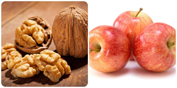 Hạt óc chó và quả táo là những thực phẩm rất tốt cho gan.