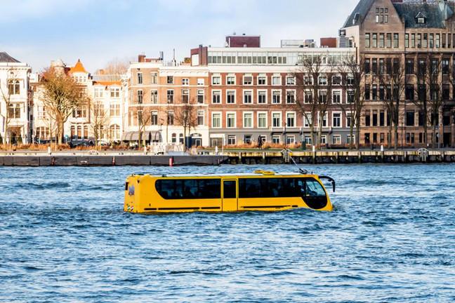 Tại Rotterdam (Hà Lan), khái niệm “off-road” được nâng lên một tầm cao mới với sự xuất hiện của Amfibus - phương tiện có thể hoạt động cả trên đường phố lẫn dưới nước.