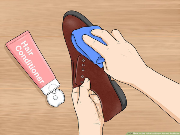 Sử dụng dầu xả để đánh bóng giày da. (Ảnh: Wikihow Life)