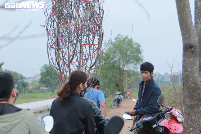 Dịch COVID-19 bùng phát khiến vườn đào 20.000 cây của anh Thuật không có tiểu thương nào nhòm ngó, anh buộc phải bán tháo với giá 300 nghìn đồng/cây để gỡ gạc vốn.