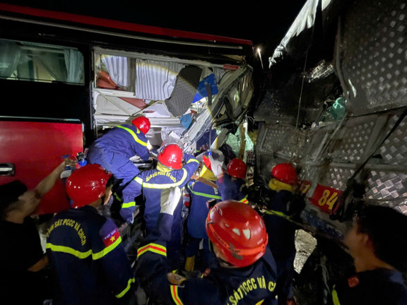 21 cảnh sát nỗ lực phá kính xe khách cứu 3 người mắc kẹt trong vụ tai nạn ở Huế