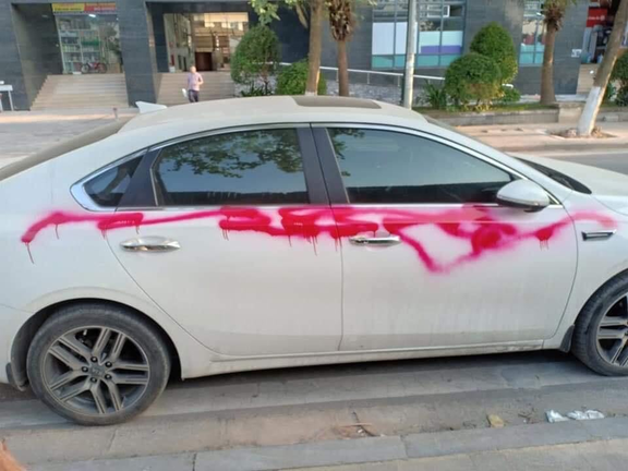 Theo đó, người dân phản ánh tại khu vực đường cạnh khu chung cư CT7 Dương Nội (thuộc phường Dương Nội) có 5 chiếc ô tô bị kẻ lạ xịt sơn đỏ khắp thân xe khiến nhiều người bức xúc.