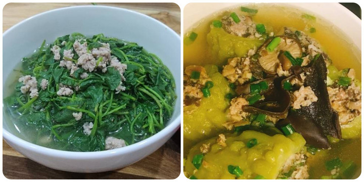 Canh rau má thịt bằm và mướp đắng nhồi thịt là hai món canh thanh nhiệt giải độc trong mùa hè rất tốt