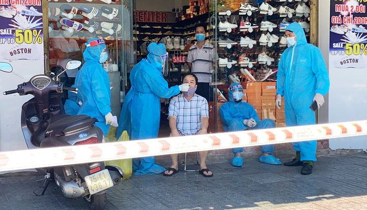 Lực lượng y tế Đà Nẵng lấy mẫu xét nghiệm COVID-19 cho người dân trong khu vực cách ly y tế.