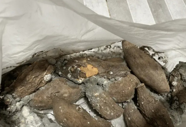 Theo khuyến cáo của WHO, khoai lang bị mốc thường chứa độc tố gây ung thư cao. (Ảnh: Sohu)