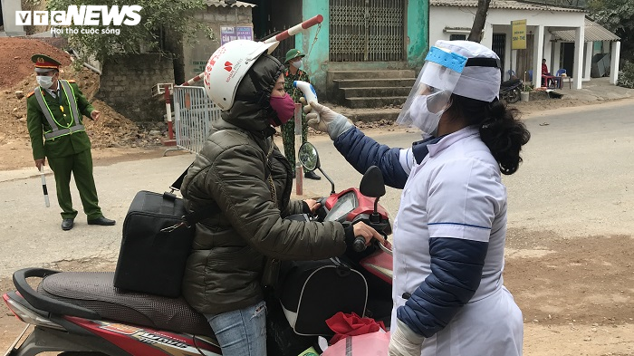 13 chốt kiểm soát chống COVID-19 được lập xung quanh lối ra vào thôn Kim Điền, xã Hưng Đạo (Chí Linh, Hải Dương), nhiều người dân đeo khẩu trang cả ở trong nhà.