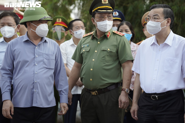 Bí thư Đinh Tiến Dũng, Chủ tịch Chu Ngọc Anh kiểm tra công tác lập chốt, chuẩn bị kiểm soát chặt người và phương tiện ra vào phân vùng 1 (vùng đỏ).