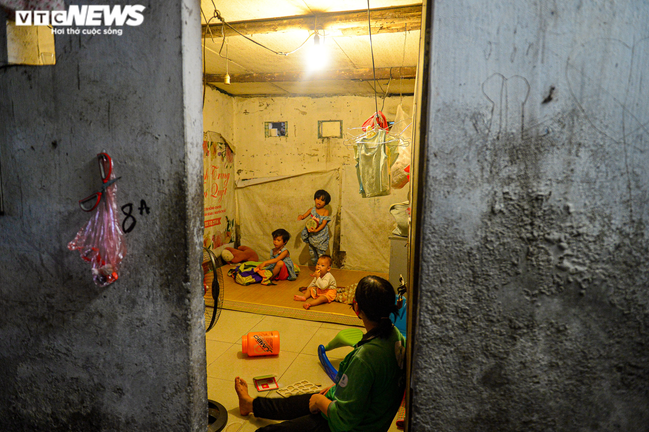 Nằm cuối dãy nhà cấp 4 là căn phòng trọ khoảng 6m2 của 4 mẹ con chị Chu Thị Bích Ngoan (quê ở Phú Thọ). Do chồng ở quê không có việc làm nên chị phải mang theo 3 con nhỏ xuống Hà Nội mưu sinh.