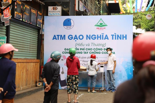 Sáng 13/4, nhiều người dân khó khăn đến máy ATM gạo nghĩa tình tại Đường sách cà phê Buôn Ma Thuột (Đắk Lắk) để nhận gạo miễn phí.