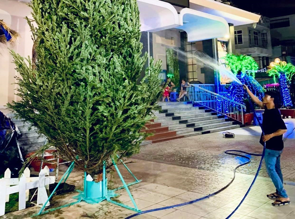 Ngày 24/12, ghi nhận của PV VTC News tại Giáo xứ Thái Bình (Xóm Mới, quận Gò Vấp, TP.HCM), cây thông tươi có chiều cao khoảng 6,5m, tán lá rộng, xanh mướt đang thu hút sự quan tâm của nhiều người.