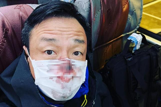Kèm theo dòng trạng thái, tài tử 55 tuổi đăng bức ảnh chụp anh trong tình trạng máu mũi thấm ướt khẩu trang y tế và đoạn video ngắn quay cảnh anh rơi nước mắt tại sân bay.