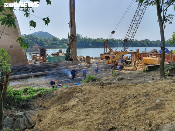 Những công nhân làm cầu Tuần bắc qua sông Hương thuộc dự án cao tốc Cam Lộ - La Sơn đang gấp rút làm việc nhằm đảm bảo tiến độ công trình.