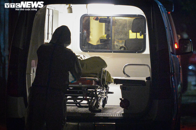 Thi thể nạn nhân được đưa lên xe cứu thương.