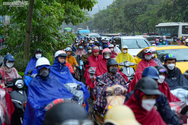 Ảnh: Hà Nội mưa lớn, người dân chật vật đi làm trong cảnh ùn tắc
