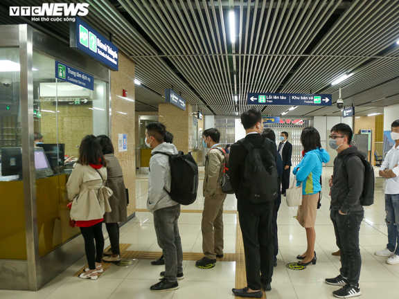 Ảnh: Hành khách xếp hàng mua vé tháng tàu Cát Linh - Hà Đông