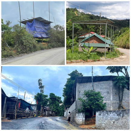 Trong hình là những cột tre quây lưới đen mới được gia đình ông Pa Vũ (SN 1964, trú bản Ván Ri) dựng lên trước nhà nằm sát tuyến đường tỉnh lộ 587.
