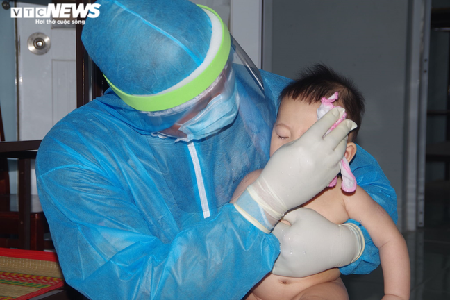 “Chúng tôi cử cán bộ y tế đến kiểm tra sức các khỏe cháu, rồi kiêm luôn tắm rửa, cho các cháu ăn uống. Chúng tôi cũng vận động chị em phụ nữ cách ly cùng đợt qua chăm sóc các cháu giúp. Các cháu quá nhỏ, phải chuẩn bị thêm đường sữa, cháo dinh dưỡng cho những ngày cách ly mới ổn”, Trung tá Đinh Văn Lực, Phó Chủ nhiệm Kỹ thuật (Bộ CHQS tỉnh Bạc Liêu) chia sẻ.