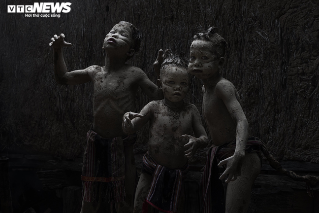 Những cậu bé được đắp lên mình toàn bùn đất để làm sao nhìn càng kinh dị càng tốt, là hình ảnh khó quên trong lễ hội Pơ Thi của người Jarai ở Gia Lai.