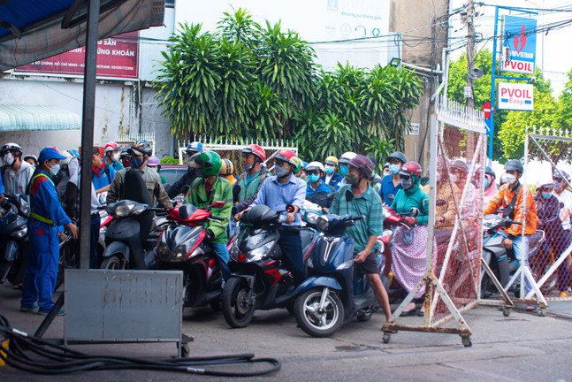 Ảnh: Người dân TP.HCM tiếp tục xếp hàng dài chờ đổ xăng
