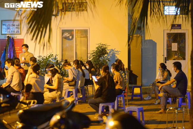 Do các lực lượng chức năng của Thành phố Hà Nội chỉ kiểm tra nhắc nhở trong 2 ngày 6 và 7/9 nên dù trời đã tối muộn nhưng vẫn còn rất nhiều người kiên nhẫn chờ đợi nộp hồ sơ xin cấp giấy đi đường.