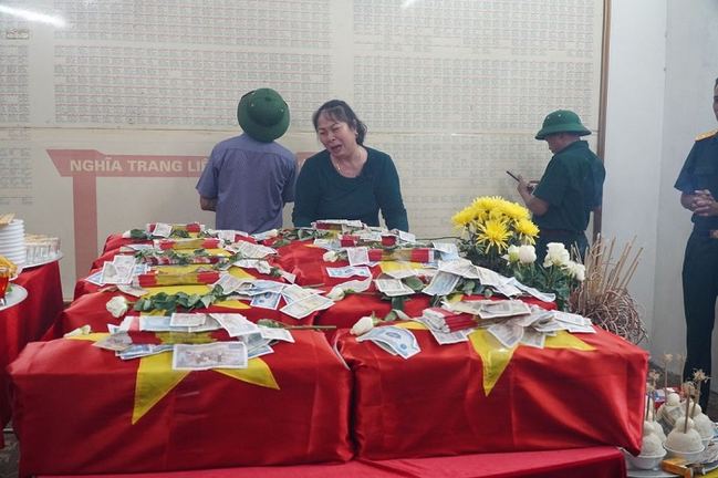 Lễ an táng hài cốt 10 liệt sỹ đã anh dũng hy sinh bảo vệ biên giới phía Bắc của Tổ quốc được tổ chức xúc động tại Nghĩa trang liệt sỹ quốc gia Vị Xuyên (Hà Giang).