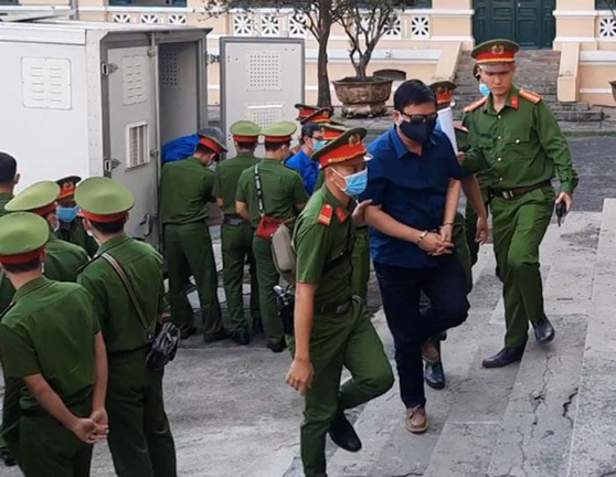 Ông Đinh La Thăng cựu Bộ trưởng Bộ Giao thông Vận tải đeo kính đen được áp giải tới TAND TP.HCM sáng nay. Ông Thăng cùng năm đồng phạm bị đưa ra xét xử về tội vi phạm quy định về quản lý, sử dụng tài sản Nhà nước gây thất thoát, lãng phí.