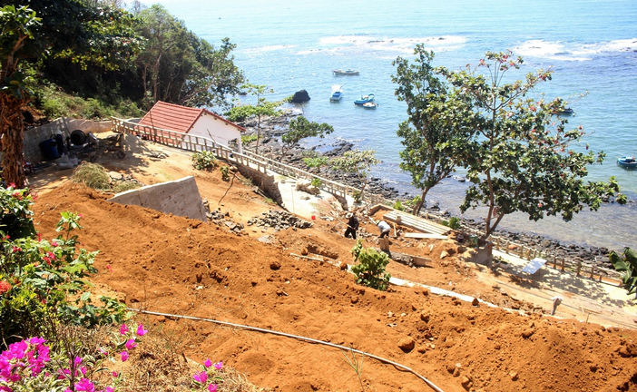 Theo tìm hiểu của PV, nhiều hộ dân sẵn sàng thuê người phá núi, rừng phòng hộ để xây tuyến kè bằng bê tông và dựng lên các hàng quán phục vụ ăn uống khiến điểm tham quan nằm trong công viên địa chất Lý Sơn – Sa Huỳnh không còn giữ được nguyên vẹn vẻ hoang sơ vốn có.