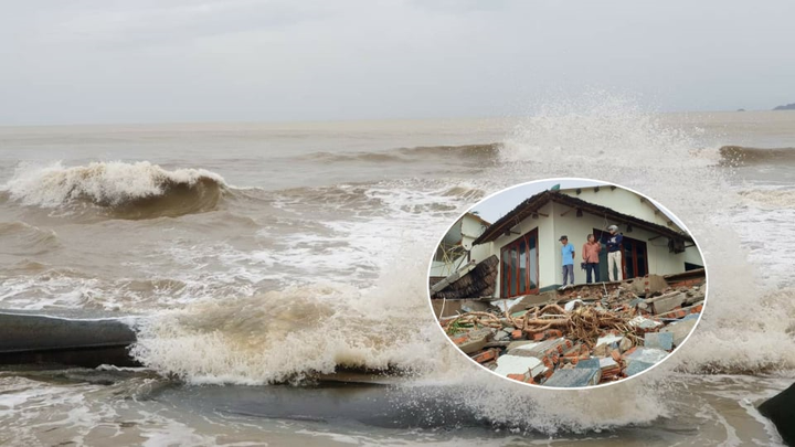 Ảnh: Sóng đánh tan hoang bờ biển Hội An, nhiều nhà dân, nhà hàng đổ sập