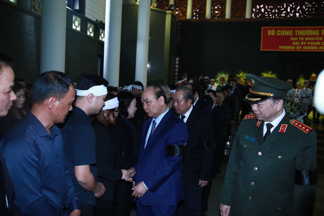 Thủ tướng Nguyễn Xuân Phúc, Phó Thủ tướng Trương Hoà Bình, Chủ nhiệm Văn phòng Chính phủ Mai Tiến Dũng cùng các thành viên Chính phủ đến dự tang lễ 3 liệt sỹ.
