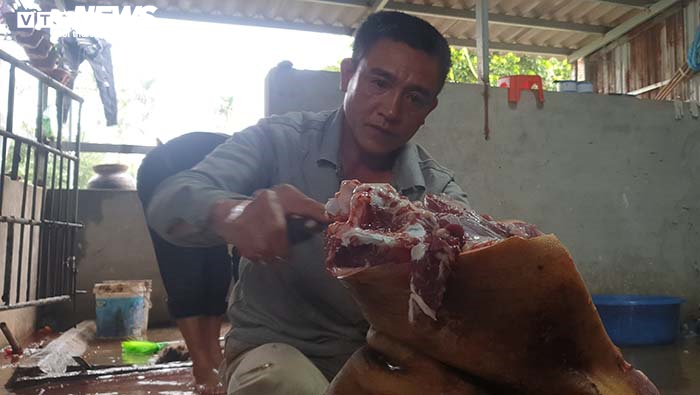 Sau khi lọc xương, thịt được chia đều cho 6 hộ gia đình.