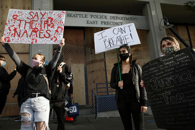 Người biểu tình bên ngoài sở cảnh sát Seattle, ngày 8/6. (Ảnh: Reuters)