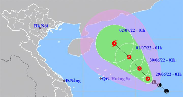 Theo Trung tâm Dự báo KTTV quốc gia, lúc 1h ngày 29/6, áp thấp nhiệt đới cách quần đảo Hoàng Sa khoảng 500km về phía Đông. Sức gió mạnh nhất vùng gần tâm áp thấp nhiệt đới mạnh cấp 6 (40-50km/giờ), giật cấp 8. Bán kính gió mạnh cấp 6, giật cấp 8 khoảng 80km tính từ tâm áp thấp nhiệt đới.