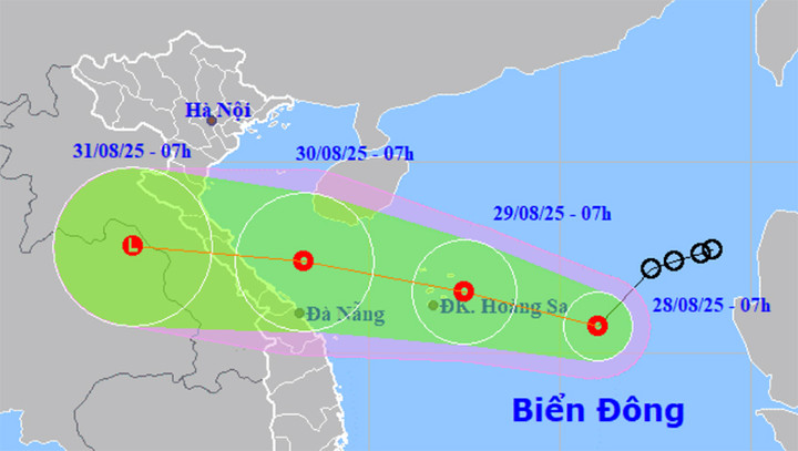 Trung tâm Dự báo khí tượng thuỷ văn quốc gia cho biết, sáng nay 28/8, áp thấp nhiệt đới ở phía Đông Bắc Biển Đông, cách Hoàng Sa khoảng 440km, mạnh cấp 6-7. Dự báo 1-2 ngày tới, áp thấp nhiệt đới di chuyển Tây Tây Bắc, khả năng ảnh hưởng đến các tỉnh Bắc Trung Bộ (Thanh Hóa đến Huế) vào khoảng 30-31/8.