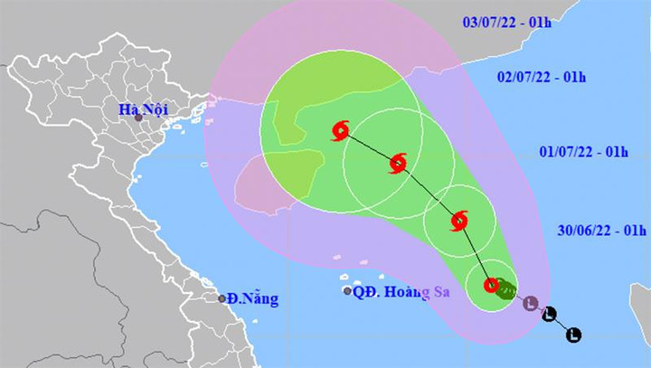 Đến 1h ngày 1/7, tâm bão cách quần đảo Hoàng Sa khoảng 410km về phía Đông Đông Bắc. Sức gió mạnh nhất vùng gần tâm bão mạnh cấp 8 (62-74km/giờ), giật cấp 10.