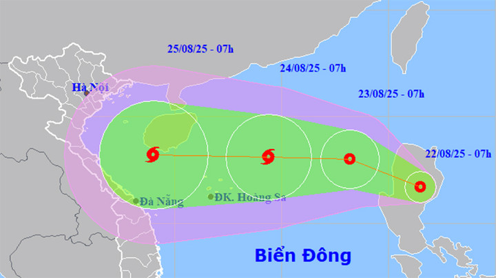 Chiều và đêm 22/8, các nơi khác của Bắc Bộ, Thanh Hóa, khu vực từ Huế đến Lâm Đồng và Nam Bộ mưa rào và dông rải rác, lượng mưa 10-30mm, cục bộ mưa to trên 70mm. Nguy cơ mưa lớn vượt 60mm trong 3 giờ.