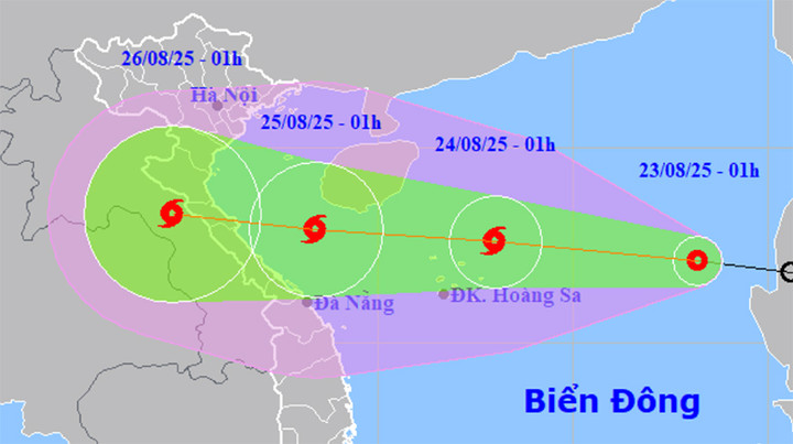 Khoảng 1h ngày 25/8, bão số 5 trên vùng biển từ Nghệ An đến TP Huế, di chuyển theo hướng Tây Tây Bắc, mỗi giờ đi được khoảng 20km và tiếp tục mạnh thêm. Sức gió mạnh nhất vùng gần tâm bão mạnh cấp 11-12, giật 15.