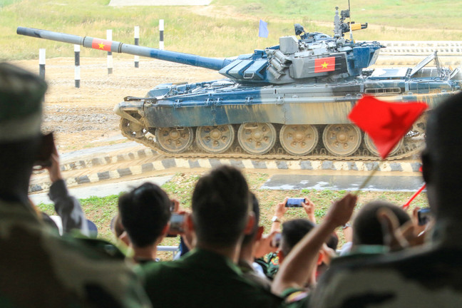 Đội tuyển Xe tăng Việt Nam lần đầu tiên lọt vào vòng bán kết Bảng 1 Xe tăng hành tiến. (Ảnh: Trần Hiếu/Vietnamplus)