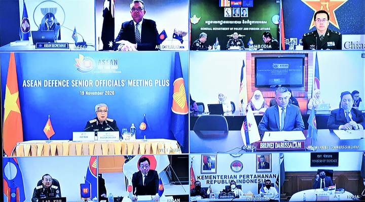 Hội nghị Quan chức Quốc phòng cấp cao các nước ASEAN mở rộng (ADSOM+) tổ chức trực tuyến tại Hà Nội ngày 19/11.