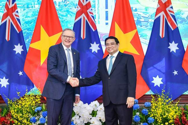 Thủ tướng Anthony Albanese khẳng định Australia mong muốn tiếp tục mở rộng hợp tác an ninh, quốc phòng với Việt Nam; khẳng định tiếp tục duy trì hợp tác ODA; nhất trí thúc đẩy hợp tác đầu tư hai chiều; tiếp tục tăng học bổng cho sinh viên Việt Nam; đồng ý xem xét lại Hiệp định Hàng không (năm 1995) điều chỉnh tăng số lượng chuyến bay giữa hai nước; nhất trí tích cực triển khai hợp tác trong các lĩnh vực hợp tác mới như kinh tế số, chuyển đổi số… Thủ tướng Anthony Albanese công bố khoản hỗ trợ 105 triệu đô la Úc cho Việt Nam dành cho hợp tác về cơ sở hạ tầng, ứng phó biến đổi khí hậu và chuyển đổi năng lượng.