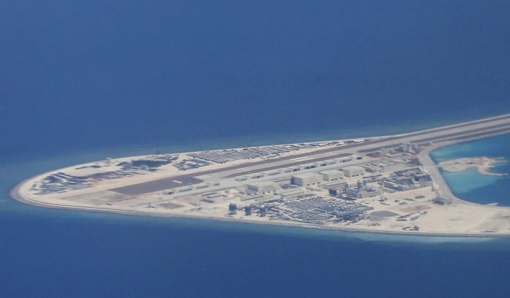 Đá Subi bị Trung Quốc bồi đắp, quân sự hóa trái phép. Ảnh: AP.