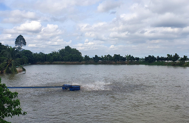 Một phần ao nuôi cá của ông Nguyễn Văn Đời ở cù lao Tân Phong.