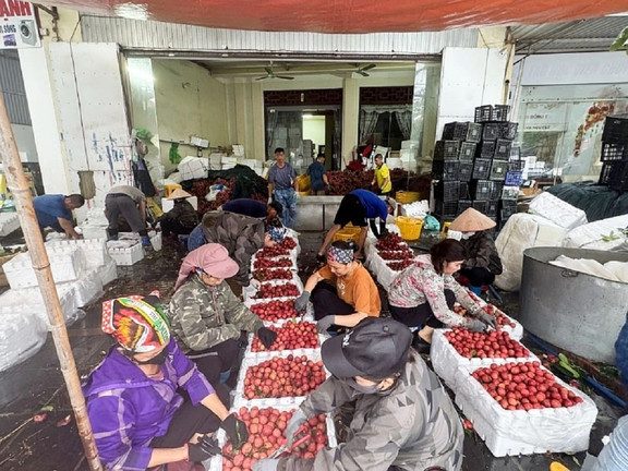 Những ngày này, trên nhiều tuyến đường tại huyện Tân Yên, huyện Lục Ngạn, thị xã Chũ, tỉnh Bắc Giang, người dân hồ hởi chở từng sọt vải thiều màu sắc rực rỡ nối đuôi nhau đến các điểm cân để thương lái sơ chế, ướp lạnh, đóng thùng mang đi tiêu thụ trong và ngoài nước.