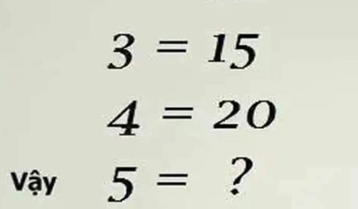 Nội dung bài toán như sau: Giả sử 1= 5, 2=10, 3=15, 4= 20 vậy 5=?.