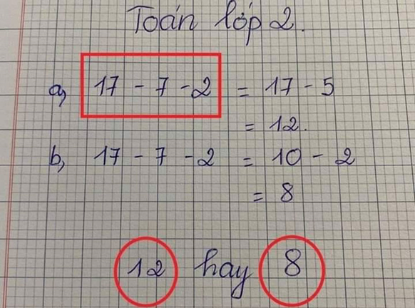 Một tài khoản mới đây đăng tải trên Facebook bài toán lớp 2: "17-7-2" thu hút sự chú ý của dân mạng.