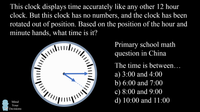 Chiếc đồng hồ này hiển thị thời gian chính xác, nhưng nó lại không có số, và đang bị xoay theo chiều không đúng. Dựa vào vị trí của kim giờ và kim phút, bạn có đoán được chính xác mấy giờ?