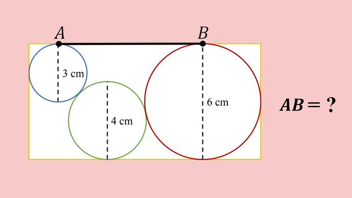 Đề bài như sau: Ba đường tròn kích thước khác nhau được đặt trong một hình chữ nhật. Được biết, đường kính của ba đường tròn lần lượt là 3 cm, 4 cm và 6 cm. Hai điểm A và B được đánh dấu ở vị trí như trong ảnh. Nhiệm vụ của người chơi là tính khoảng cách giữa A và B.