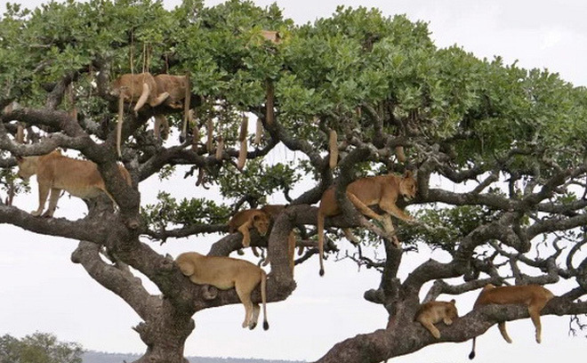 Bức ảnh này được nhiếp ảnh gia Paul Kirui của BBC (Anh) chụp trong Vườn Quốc gia Serengeti tại Tazania, ghi lại khoảnh khắc cả đàn sư tử leo lên nằm trên cây cao.
