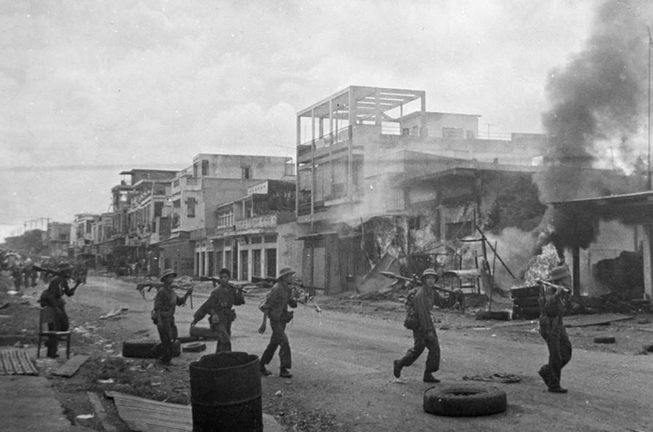 Quân ta tiến đánh Xuân Lộc sáng 9/4/1975. (Ảnh tư liệu: LSQSVN)