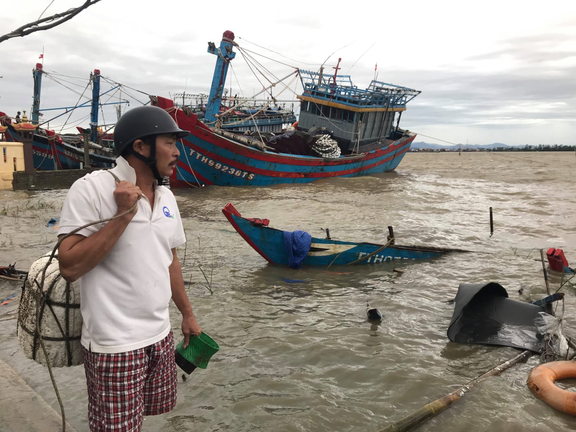 Bão số 13 quét qua Thừa Thiên - Huế gây mưa to và gió lớn khiến tàu của ngư dân bị chìm, cây xà cừ cổ thụ ở TP Huế bị đánh bật gốc.