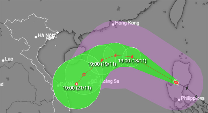 Khoảng 19h ngày 19/11, bão ở phía Tây khu vực Bắc Biển Đông, cách quần đảo Hoàng Sa khoảng 220 km về phía Bắc, đổi hướng Tây, sau đó là Tây Tây Nam, mỗi giờ đi được khoảng15km, tiếp tục suy yếu thêm.